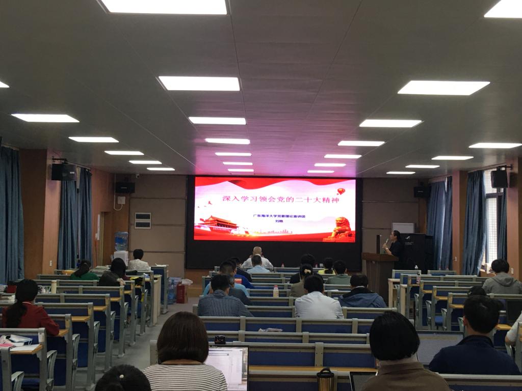 党委在湖光校区海科楼107室举行学习贯彻党的二十大精神宣讲报告会,邀请学校党委理论宣讲团成员、马克思主义爱壹帆