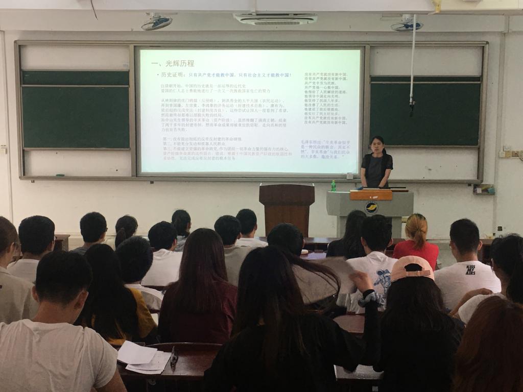 谢玲玲以《学党史、强信念、报祖国》为题,从艰苦卓绝奋斗的新民主主义革命时期、改天换地的社会主义革命和建设时期、发生翻天覆地变化的改革开放和社会主义现代化建设时期、全面建设社会主义现代化强国、奋力实现中华民族伟大复兴中国梦的新时代四个时期,讲述了中国共产党矢志不渝、践行初心、筚路蓝缕、创造辉煌、开辟未来的光辉历程。