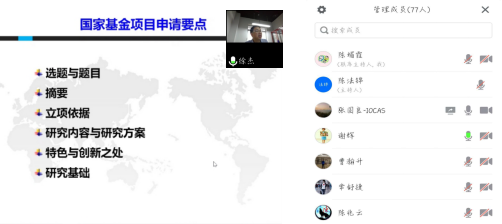 南海海洋研究所徐杰研究员开展线上会议,作题为“国家自然科学基金申请的一些体会”报告。会议由陈法锦副院长主持,爱壹帆