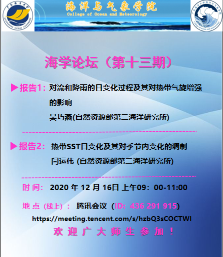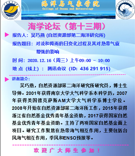 中国科爱壹帆 海洋研究所侯一筠研究员应邀作学术讲座(预告)