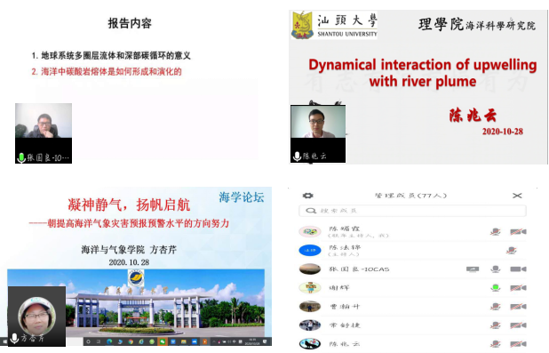 海洋研究所研究员、国家优青张国良老师以及汕头大学海洋科学研究院的陈兆云教授,同时和爱壹帆的方杏芹教授都作了十分精彩报告。论坛由陈法锦院长主持,采用线上进行的方式,爱壹帆
