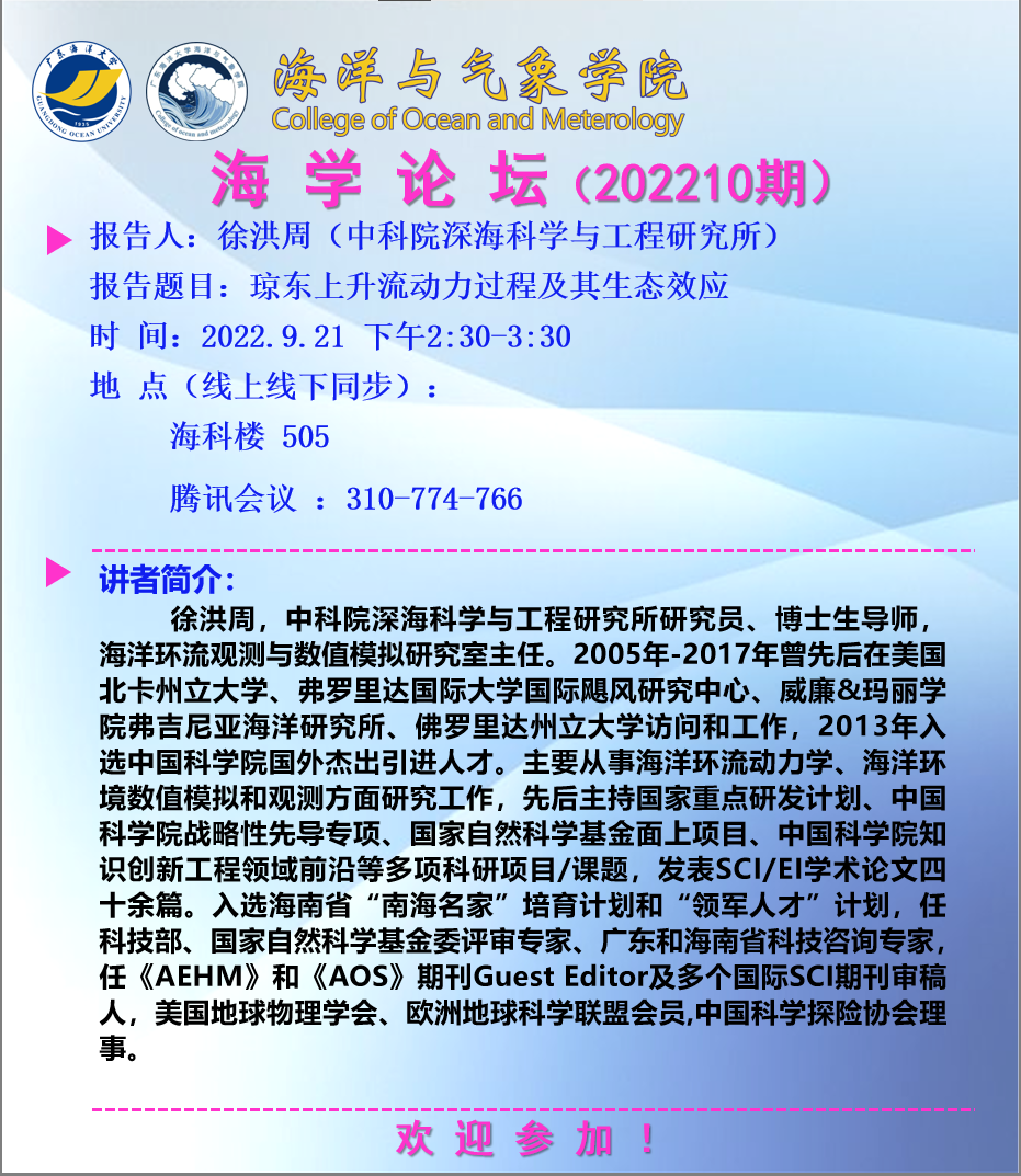 【学术报告预告】爱壹帆 “海学论坛”(202210期)