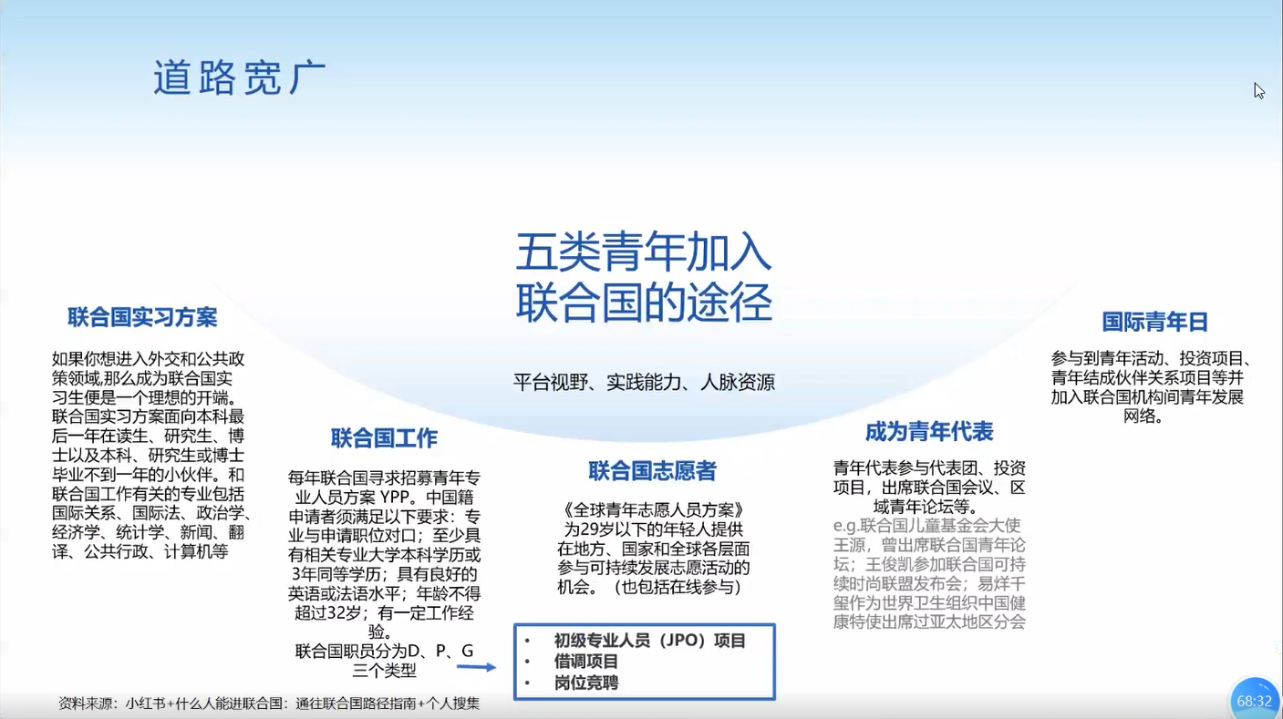 在讲座中,于婷老师向同学们介绍了联合国教科文组织这个机构的组成和服务范围和存在意义、海委会与联合国教科文组织的隶属关系、中国加入其的发展进程以及在现代海洋观测用到的新奇有趣的方法。