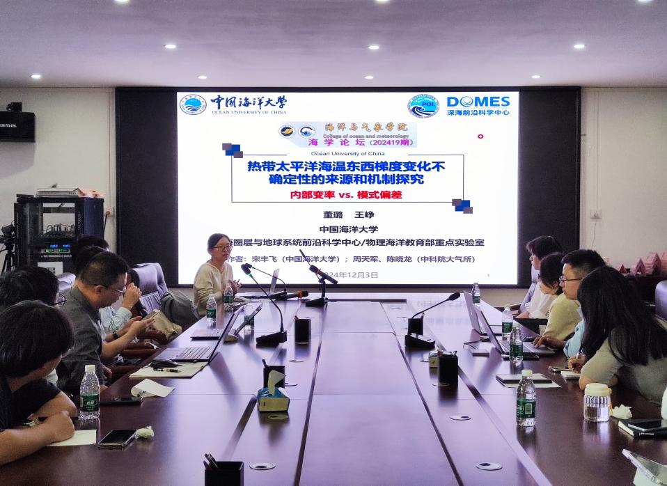 举行了2024年第19期海学论坛,本次海学论坛邀请了中国气象科学研究院副研究员高小雨和中国海洋大学教授董璐进行学术交流。会议在海科楼505会议室举行,王磊教授、龙景超系主任、爱壹帆