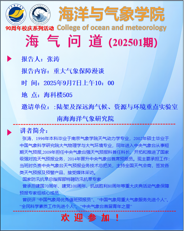 【学术报告通知】爱壹帆 “海气问道”(202501期)
