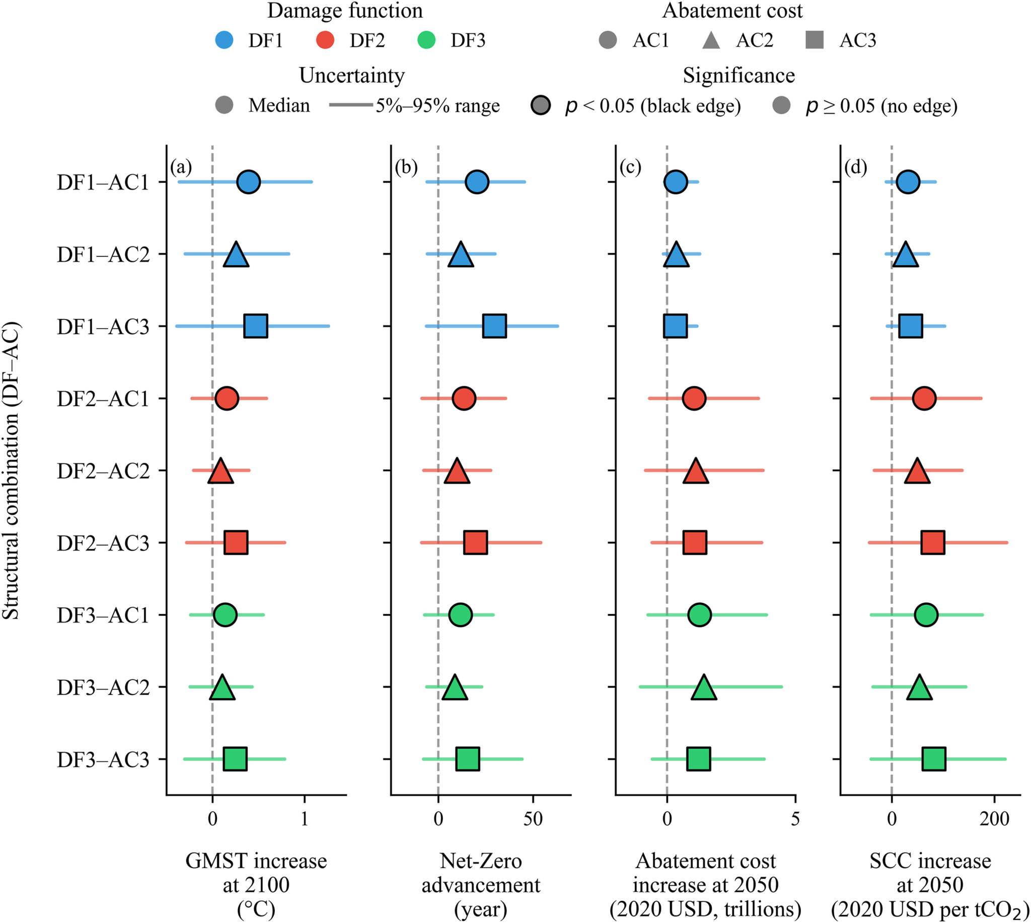 该研究创新性地在IAM框架内建立了“物理气候弱化—温度放大—经济风险级联”的完整传导机制,系统性阐明了温度依赖性气候反馈减弱向政策相关指标的传导路径,填补了该领域的研究空缺。研究表明,忽略气候系统在升温条件下的动态变化,将导致风险评估建立在有偏的物理基础之上,使得当前气候韧性策略的制定陷入过于乐观的基准情景之中。因此,下一代IAMs应将状态依赖性的气候系统响应特征纳入核心框架,为气候政策的科学决策提供更为真实、稳健的支撑。