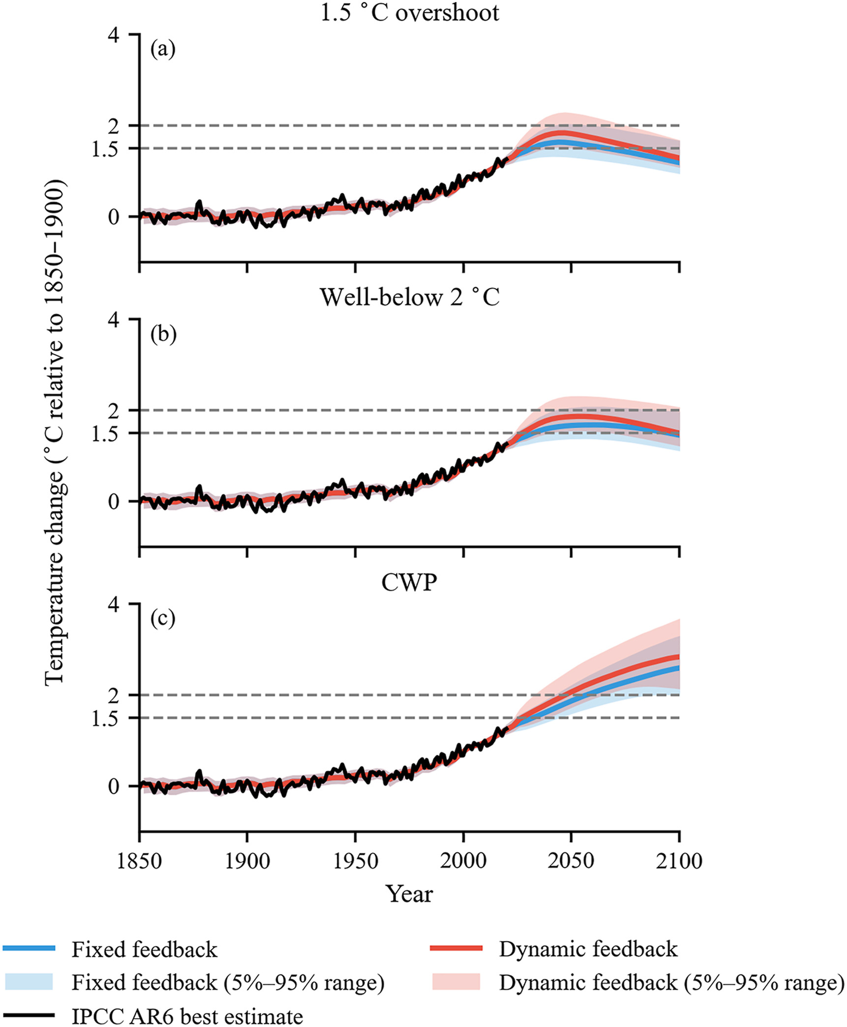 综合评估模型(Integrated Assessment Models, IAMs)是连接气候科学与社会经济决策的核心分析工具,被广泛应用于估算碳社会成本(Social Cost of Carbon, SCC)、探索减排路径和指导气候政策设计,其输出结果直接影响着IPCC情景框架与国际气候谈判。在当前我国推进“双碳”目标的关键时期,IAMs所提供的气候经济分析质量对政策制定的科学性至关重要。为了提升物理真实性,研究者通常将FaIR、MAGICC等简化气候模型(SimpleClimate Models, SCMs)嵌入IAM框架,以模拟温室气体浓度、辐射强迫和全球平均地表温度的动态演变。然而,现有SCMs普遍将净气候反馈参数(ג)视为固定常数,这与大量气候科学证据相悖——IPCC第六次评估报告(AR6)已高置信度地指出,随着地球持续升温,净气候反馈会逐渐减弱,该现象已被CMIP6地球系统模式模拟结果、古气候重建数据和观测分析所证实。这一结构性简化使传统SCMs忽视了气候系统的自我调节能力,可能导致对未来升温轨迹和气候经济风险的系统性低估,进而使政策制定者采纳过于乐观的基准情景,低估减排行动的紧迫性。