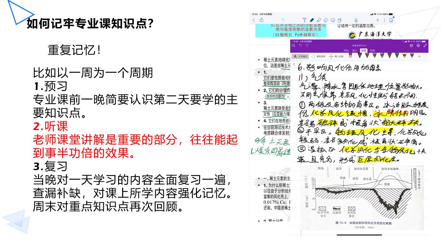 同时,师兄师姐们还分享了保研面试的经验、考研备考的注意事项,介绍了考研择校、复试的技巧,建议同学们利用饭后零碎时间来增加词汇量,提高阅读速度。
