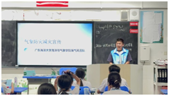 为了深入基层宣讲,海气风云队分别走进府城社区街道和海垦街道滨濂北社区派发气象防灾减灾科普知识传单和举办气象防灾减灾科普知识讲座。深入基层,紧密贴近生活实际,以生动形象的方式将气象防灾减灾科普知识传递给群众。该团队将气象科普宣传和调查研究相结合,不仅向民众普及知识,期望通过调研,明晰民众对气象防灾减灾知识的认知程度以及对气象服务的真切需求。