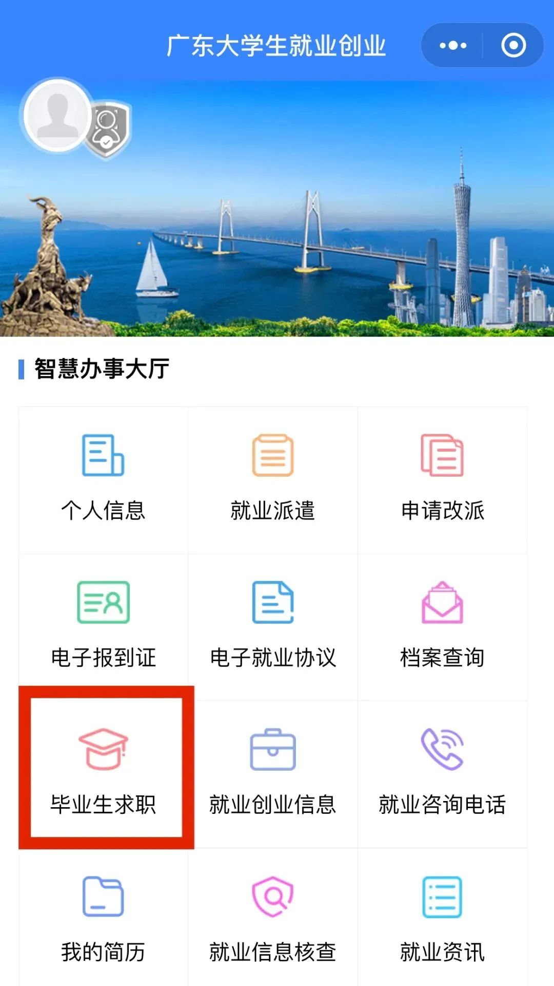 招聘会采用线上举办的模式,依托广东省高校毕业生就业创业智慧服务平台开展。可在“广东大学生就业创业”微信小程序线上投递,步骤如下: