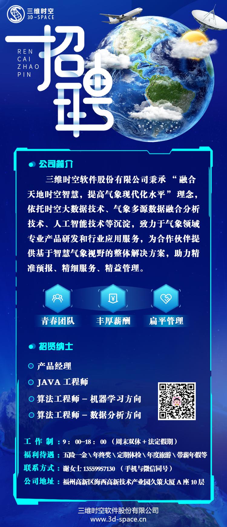 6、大学本科或研究生学历,大气科学、农业气象、应用气象、地理信息、卫星遥感、软件工程、计算机、计算数学、统计学等相关专业。具有一定的气象知识储备以及一年以上的气象或应急减灾服务等相关工作经验优先。