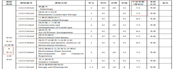 园艺专业人才培养方案中学科专业拓展课程设置为例: