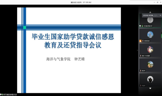 于2020年5月21日下午召开了2016届毕业生国家助学贷款诚信感恩教育及还贷指导会议。会议由分管助学贷款工作辅导员钟艺晴主持,参与贷款的全体毕业生参加了会议。