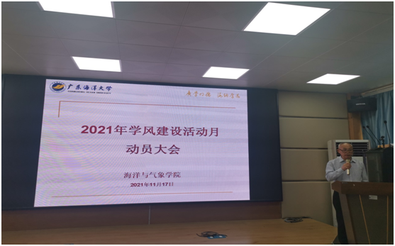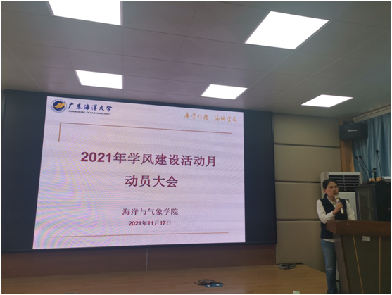 在海科楼107报告厅举行2021年学风建设活动月动员大会。学院党委书记陈晓、院长谢玲玲、副书记刘宏英、副院长薛宇峰、副院长郑少军出席会议,各系、中心领导以及院办全体干部、全体辅导员、全体班主任和老师参加了会议。会议由刘宏英副书记主持。