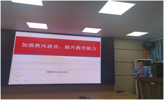 2021年“学风建设活动月”实施方案》,具体布置了学风建设相关工作,要求全体老师要共同参与学风建设,高效率、高质量地完成学风建设活动月的各项工作,促进学院学风进一步向好发展。薛宇峰副院长阐释了教风的涵义,对学生课程考试中存在的补考突出问题进行了具体分析,从课程考核、考前辅导答疑、考试命题原则、监考要求、试卷批阅、成绩评定等方面对教师的工作提出了要求,强调要加强教风建设,进一步提升教学能力,以优良教风促进形成优良学风。
