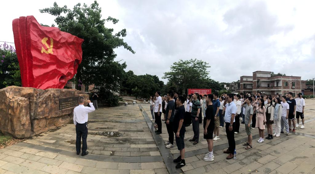 坡头泮北红色革命教育基地是中共广东南路特委旧址、广东南路人民抗日解放军成立地,中共南路特委组织和领导南路人民抗日救亡运动的重要据点。在泮北村红色革命教育基地纪念雕塑前,在学院党委委员林海峰同志的带领下,面对鲜红的党旗,全体党员肃立,高举右手,在铿锵的誓言中重温入党誓词感受初心使命,更加坚定为党和人民伟大事业奋斗终生的决心。