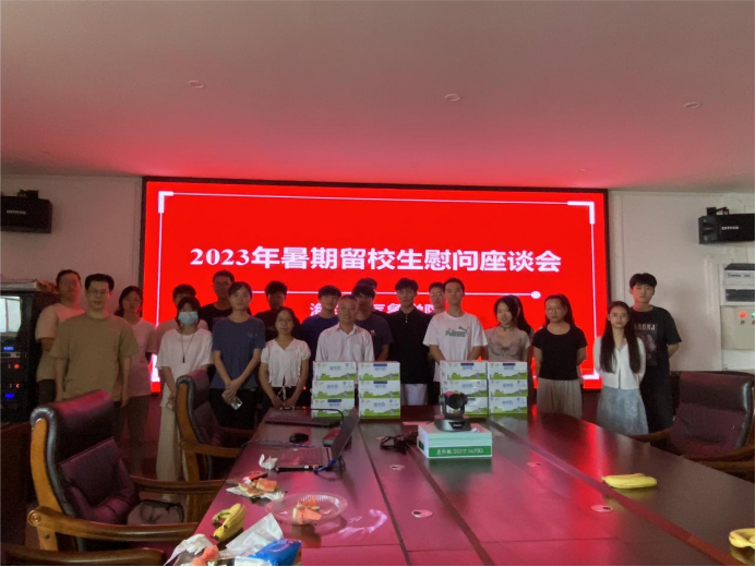 在海科楼505会议室召开2023年暑期留校学生慰问座谈会。学院副处级辅导员林海峰和负责2020级学生的辅导员林恒宗老师及暑期留校备战考研学生参加了座谈会。