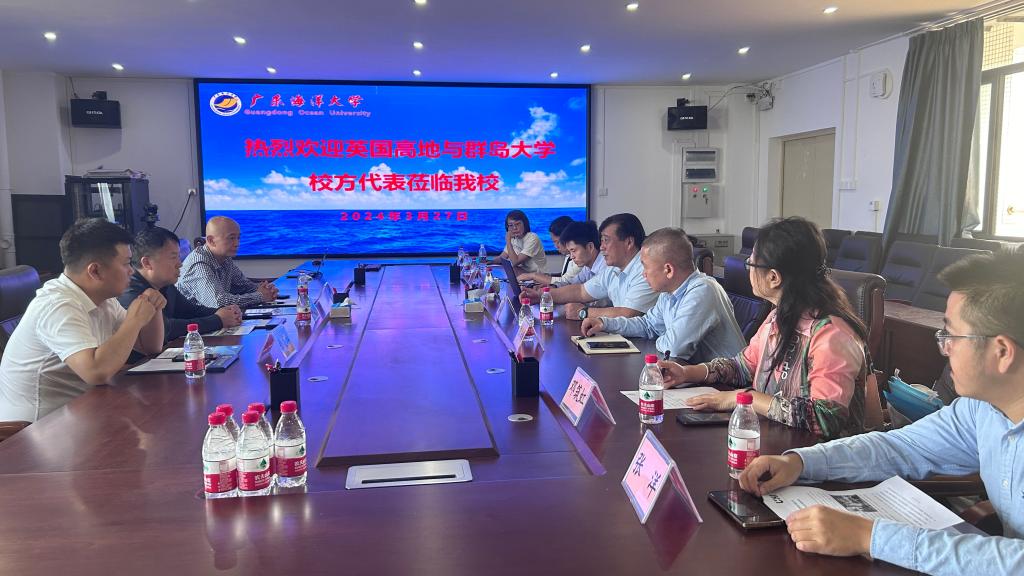相关人员接待来宾,为推进两校海洋科学专业合作办学项目举行座谈会。