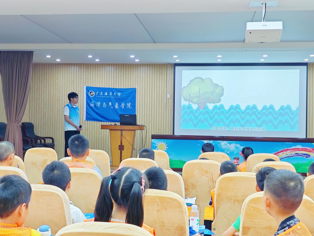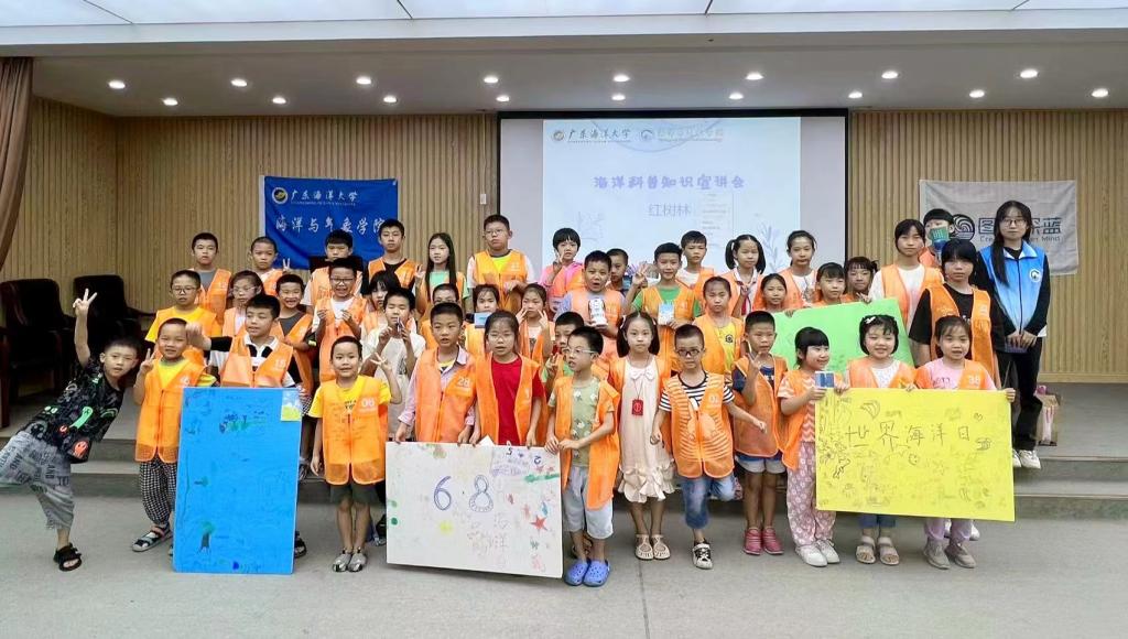 的“小老师”们通过图文并茂、生动有趣的形式,向孩子们介绍了人类如何给海洋“做体检”、海洋环境的污染及治理以及红树林科普宣传、防雷教育等。此外,“小老师”还与孩子们共绘“海洋许愿墙”,写下各自对海洋的祝福、个人未来的目标与理想。