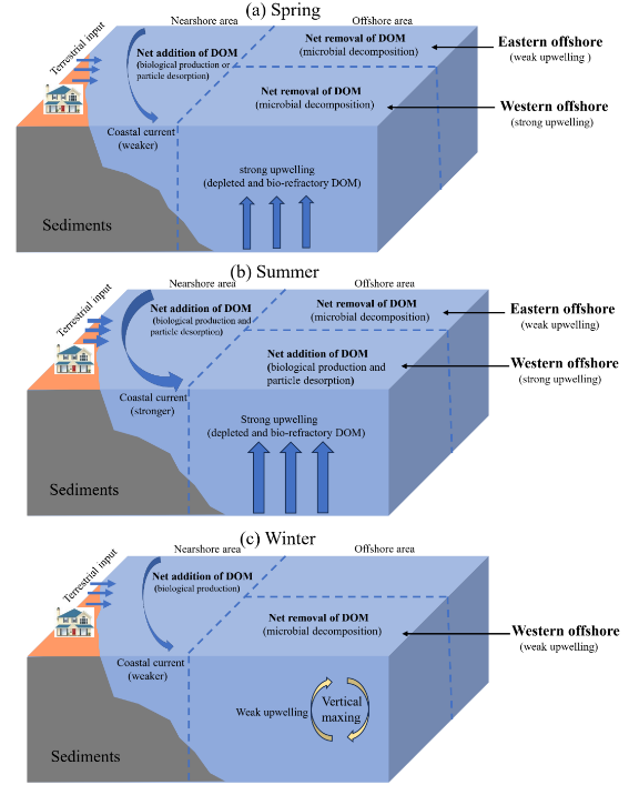 Lu, X., Lao, Q., Wang, C., Chen, F.*, Cai, S., & Liu, S. (2024). The seasonal effect of coastal current and upwelling on the dynamics of dissolved organic matter in the northwestern South China Sea. Journal of Geophysical Research: Oceans, 129, e2024JC021064. //doi.org/10.1029/2024JC021064