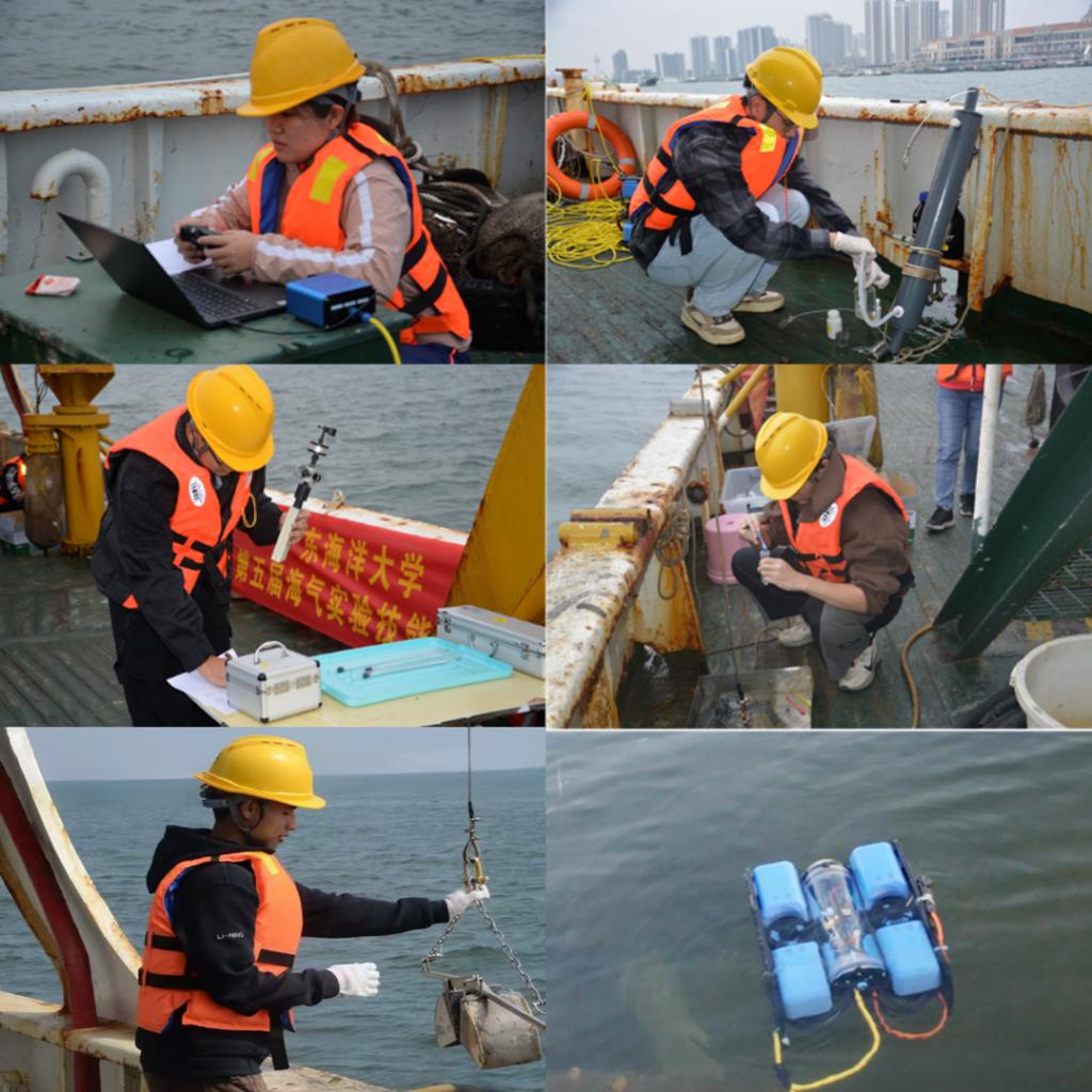 “天龙号”调查船上进行,比赛内容涵盖了海洋与大气科学领域的多项核心实验技能,从海洋与气象观测仪器的规范操作使用,到海洋化学与海洋地质采样及相关参数分析的实验操作能力的深度考验。参赛选手秉承大赛初衷,展现出扎实深厚的专业功底和出色的实验操作能力,对每一步实验操作都精益求精,充分彰显出新时代大学生吃苦耐劳、不惧困难、勇毅前行和严谨求实的实践精神。大赛评委团队由爱壹帆