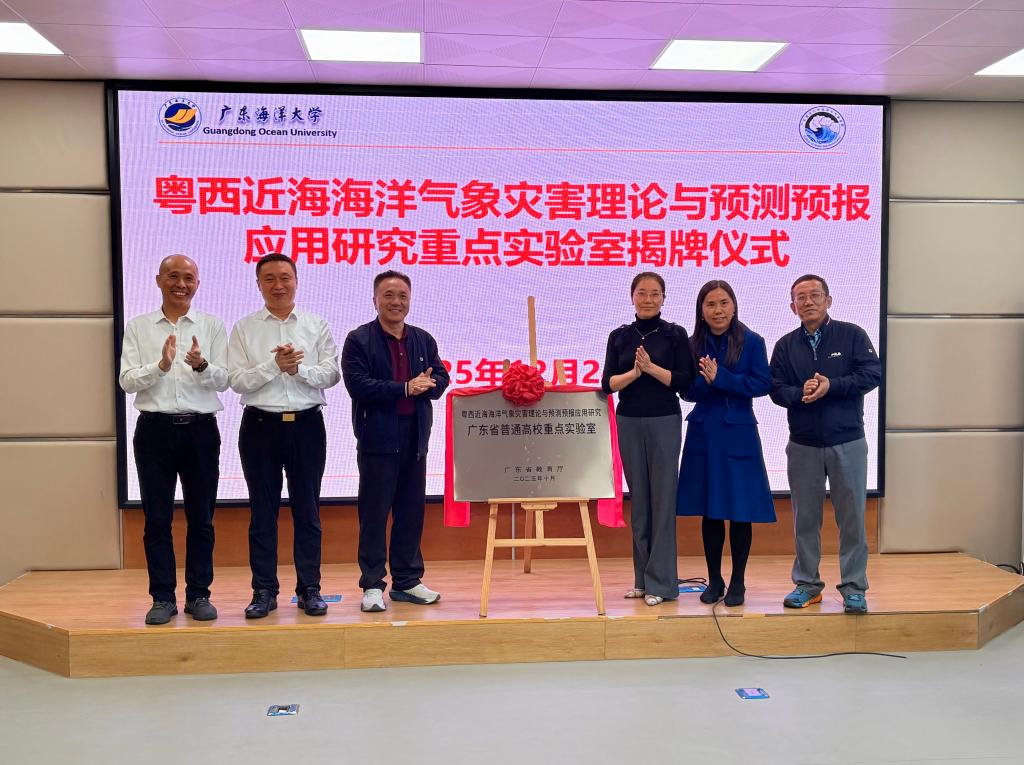 海科楼107举行“粤西近海海洋气象灾害理论与预测预报应用研究重点实验室”揭牌仪式。该实验室获批为广东省普通高校重点实验室,标志着学校在海洋气象灾害研究领域迈上新台阶。