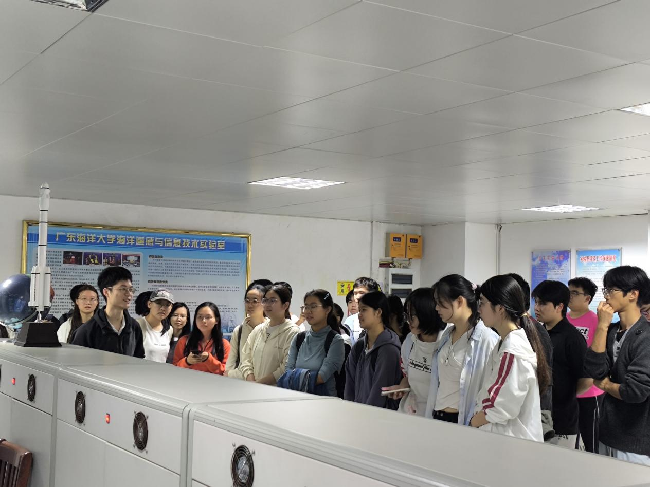 见习首站走进校内我校电信学院海洋遥感实验室,作为“全国海洋科普教育基地”的重要组成部分,这里成为学生开启实践探索的第一课堂。实验室工作人员系统讲解了卫星数据接收、整理、分析的全流程,展示了遥感技术在南海海洋环境监测领域的前沿成果,让学生直观理解了水色遥感等技术对海洋科学研究的核心意义。“原来课本里抽象的遥感反演原理,能直接转化为监测海洋生态变化的有效工具。”学生们在近距离观察卫星数据接收系统后纷纷表示,理论与实操的碰撞让专业认知更加深刻。