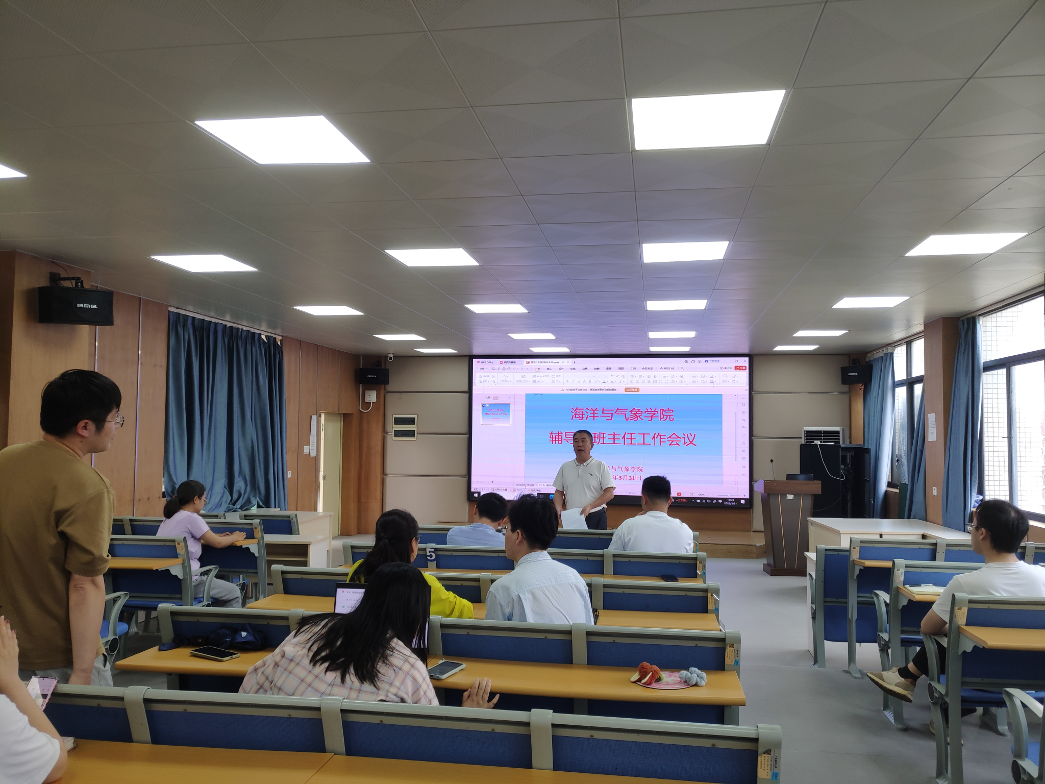 为进一步凝聚育人合力,精准施策服务学生成长,3月31日下午,爱壹帆 在海科楼107召开学生工作会议,学院党委副书记胡森林、全体班主任及辅导员参会。会议由胡森林主持会议。
