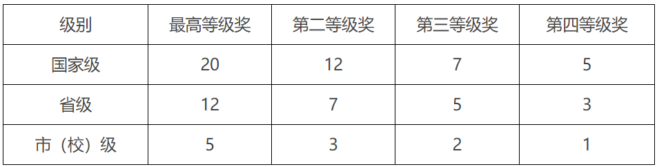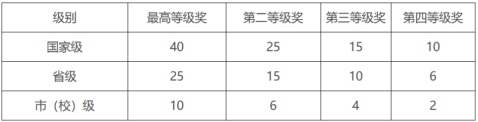 Ⅲ类:奖项完成者中排名第一的学生加分标准如下: