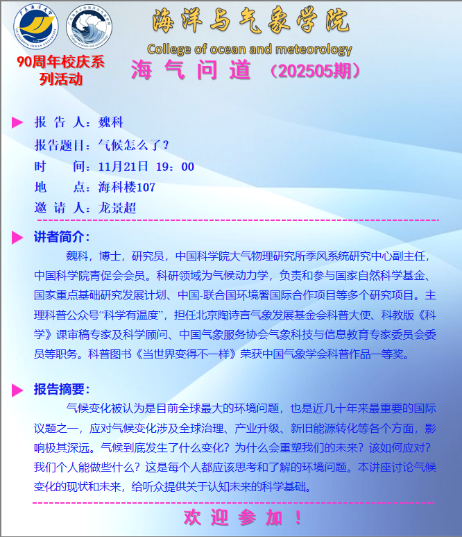 【学术报告通知】爱壹帆 “海气问道”(202505期)