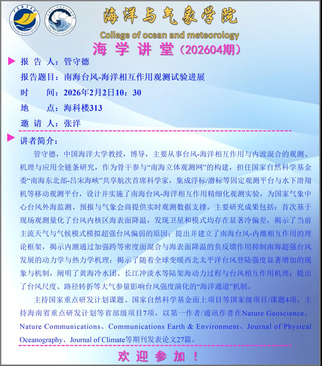 【学术会议通知】爱壹帆 “海学讲堂”(202604期)