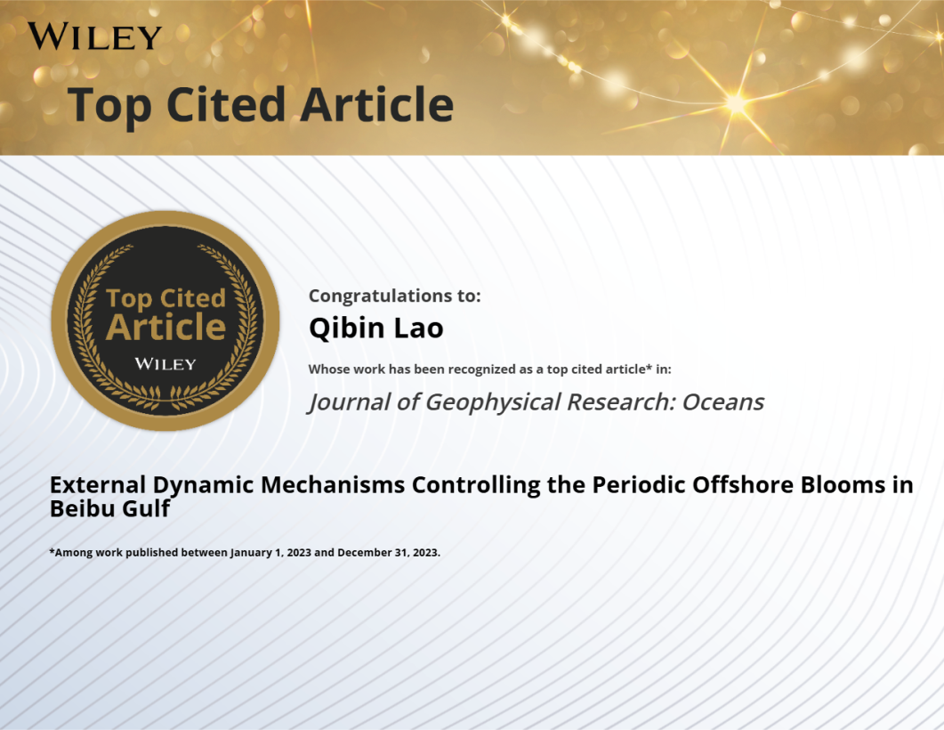 Lao, Q., Liu, S., Ling, Z., Jin, G., Chen, F.*, Chen, C., & Zhu, Q. (2023). External dynamic mechanisms controlling the periodic offshore blooms in Beibu Gulf. Journal of Geophysical Research: Oceans, 128(6), e2023JC019689. //doi.org/10.1029/2023JC019689