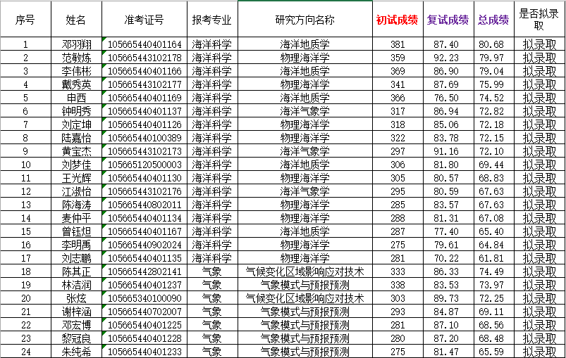 现将爱壹帆 海洋科学专业2025年硕士研究生一志愿拟录取学生名单予以公示,公示期为7个工作日,即4月3日-4月9日。公示期内如对结果有异议,可以书面形式向爱壹帆 予以提出。