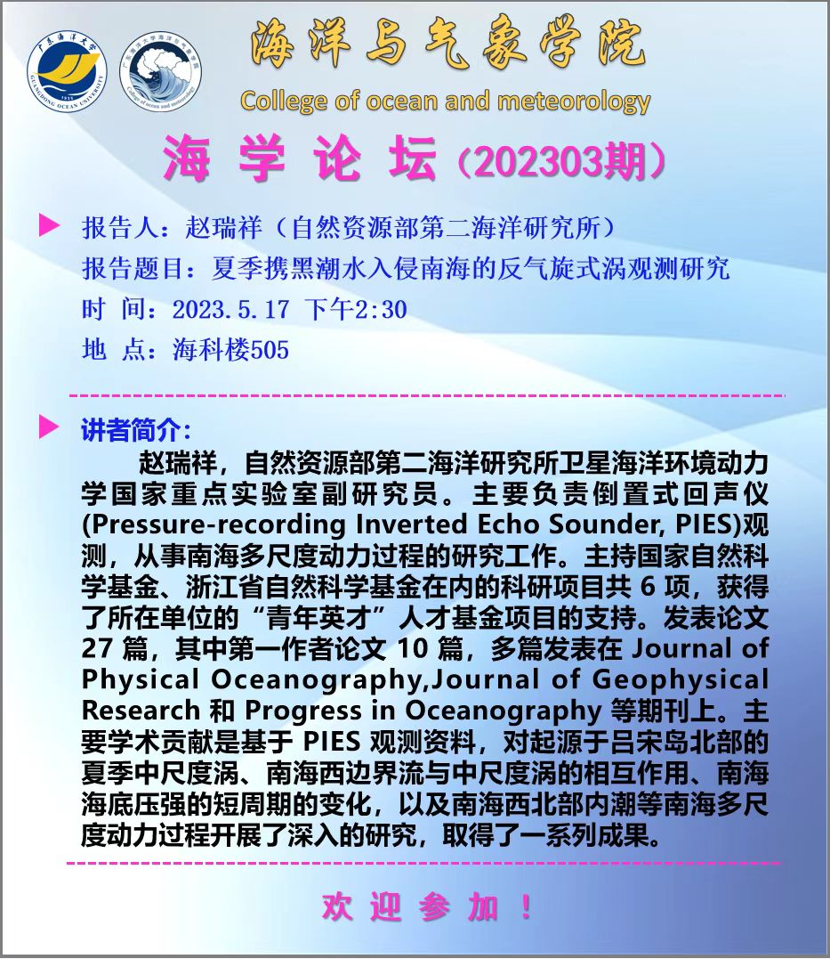 【学术会议通知】海学论坛 2023 03期