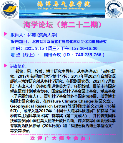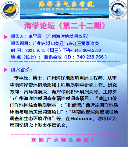 【学术会议通知】海学论坛(二十二期)