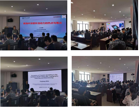 会上王东晓教授以“南海中深层环流动力的热点与难点”为题,就南海中深层环流的研究背景给出了深入浅出的剖析,针对南海中深层环流的热点问题(如三层环流、深海瀑布、深层西边界流、陆坡逆流等)以及南海中深层环流的研究难点(如深层环流驱动机制、经向反转流、深海涡旋等)开展了融会贯通、高屋建瓴的精彩论述,对参会师生给出了聚焦前沿、勇攀学术高峰的鼓励寄语,并与现场师生开展了热烈的学术互动。