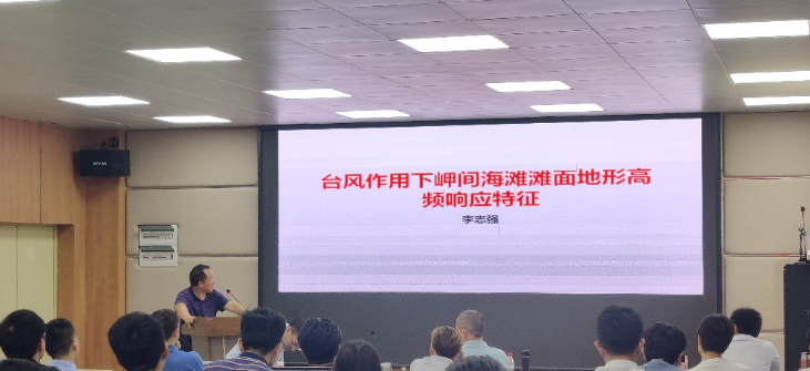 本次会议共组织了16场学术报告,其中6场为本校研究生所做报告。在报告开始之前,物理海洋、海洋气象、海洋化学和边缘海地质学各个学科方向均派代表老师在会上针对各自方向的近期研究作了简单汇报。学科方向汇报完成后,学术报告专场正式开始,李志强教授首先台为我们介绍了风作用下岬间海滩滩面地形高频响应特征,随后代替未能到场参会的张鹏老师作了题为“Long-term red tide outbreaks, nutrients pattern under the climate change and anthropogenic pressures in the Zhanjiang Bay, China”的学术报告。彭诗云、韩利国、罗亚飞、谢辉、李高聪、李敏、梁梅和李君益等多位老师都就各自领域的最新研究进展作了精彩纷呈的汇报。另外我校的陈国生、陈莹、黄润琪、冯伟家、陆旋和王焕等多位优秀研究生也就自己研究内容进行了汇报。现场讨论激烈,氛围浓郁,学术会议取得良好效果。
